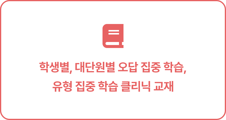교재 만들기로 문제지 만들기와 프린트 부담을 줄이면서도 보다 손쉬운 오답 및 유형 클리닉으로 학습 효과를 높일 수 있습니다.